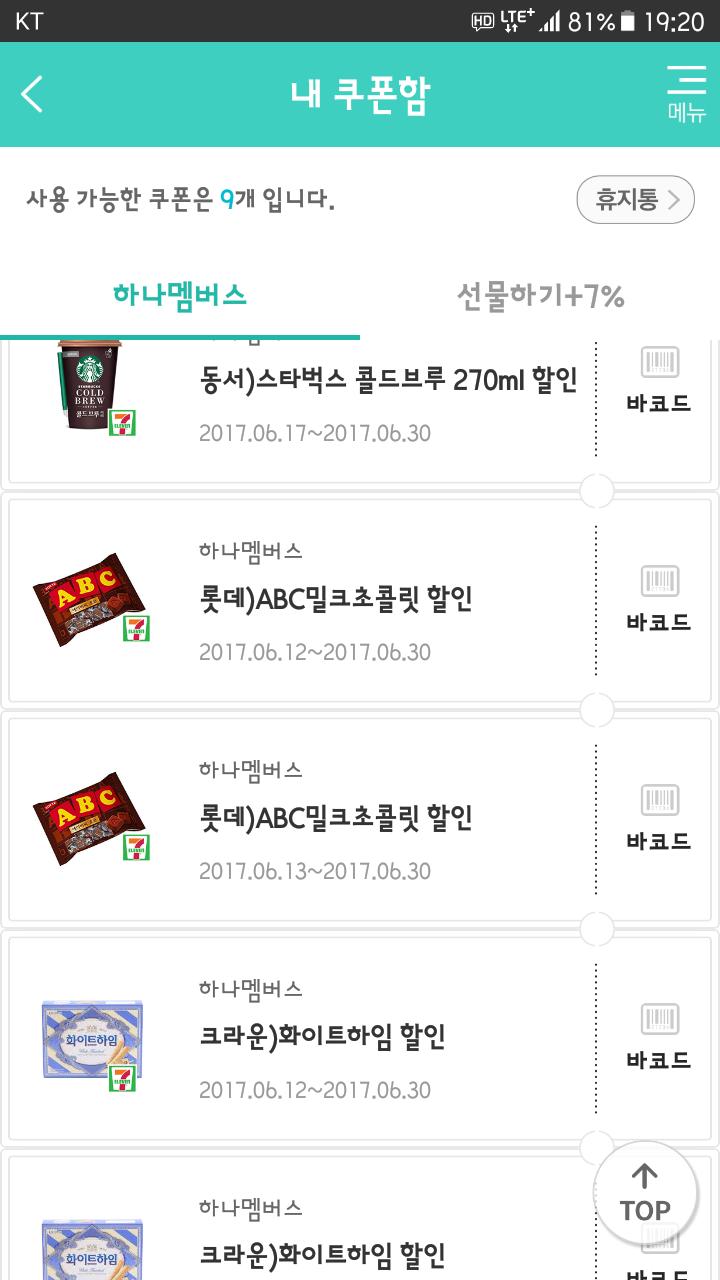 던킨이나 파바는 안걸리고 이상한 할인쿠폰들만 많이 걸리네요..