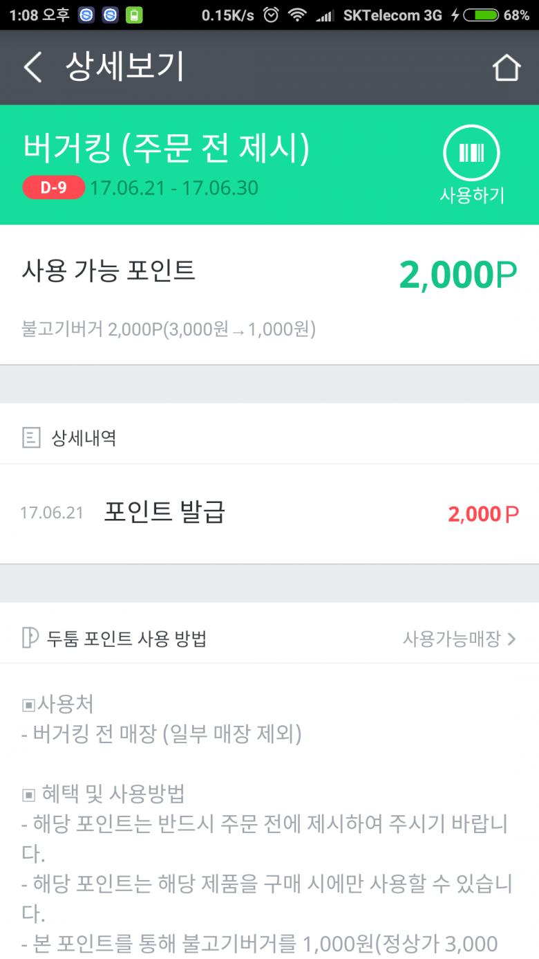 와퍼 행사 7월 초였나 까지에 같이 쓸수있겠네요.
