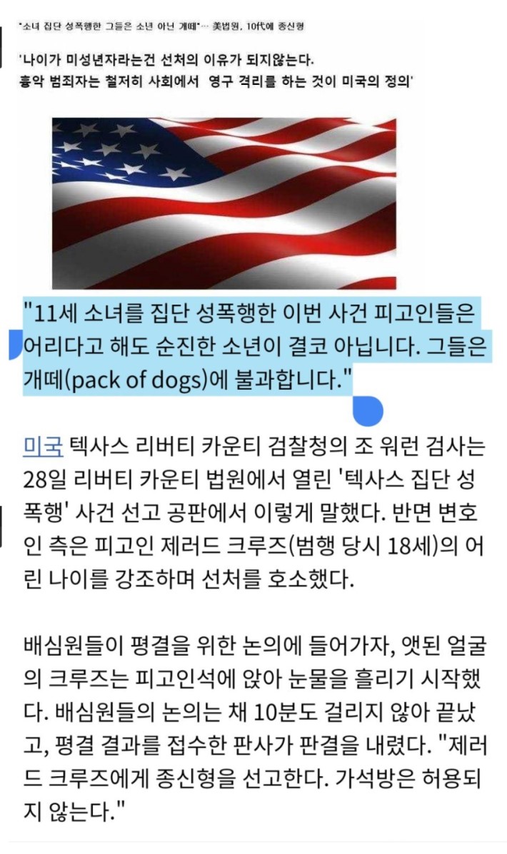 대한민국에서는 미성년자 처벌이 약하다고 그냥 단순히 쎄게 처벌한다고 해결도 안된다는게 문제죠..