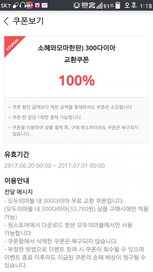 당첨된 300다이아는 쿠폰형식으로 주는게 아니고 결제시 무료결제 쿠폰으로 사용하실수 있구요 32700원짜리? 패키지 무료로 구입하실수 있어요 (덕분에 vip등급으로 올라갔네요..)