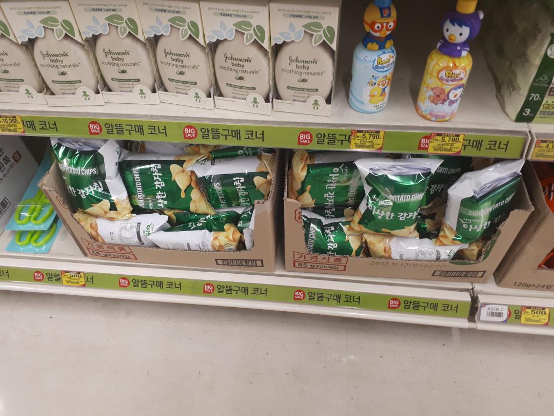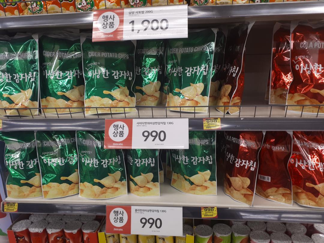 맨위에 사진부터 천천히 내려가보자면 일단 익히 알고는 있었으나 시도해보지 않은 이상한감자칩이 한봉지 단돈 5
