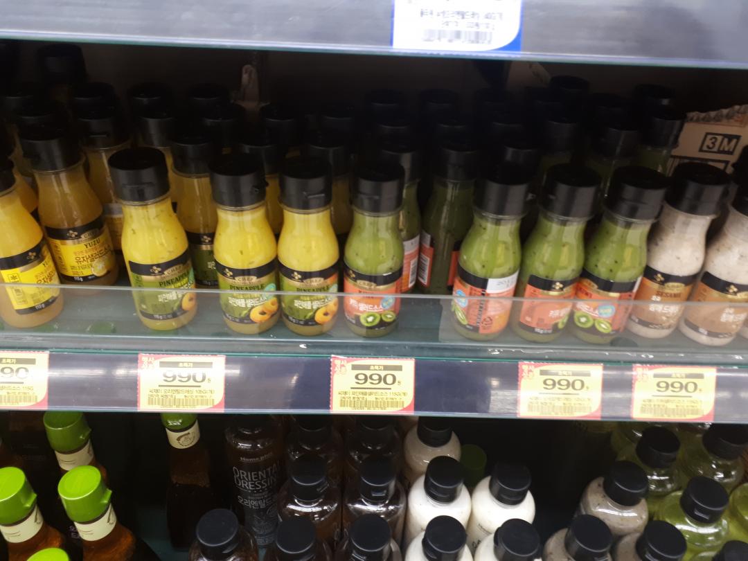 샐러드 소스가 전부 990원에 판매를... 키위랑 파인애플 유자 5~6개 집어왔습니다 ㅋㅋ 그리고 상암동 홈플러스에