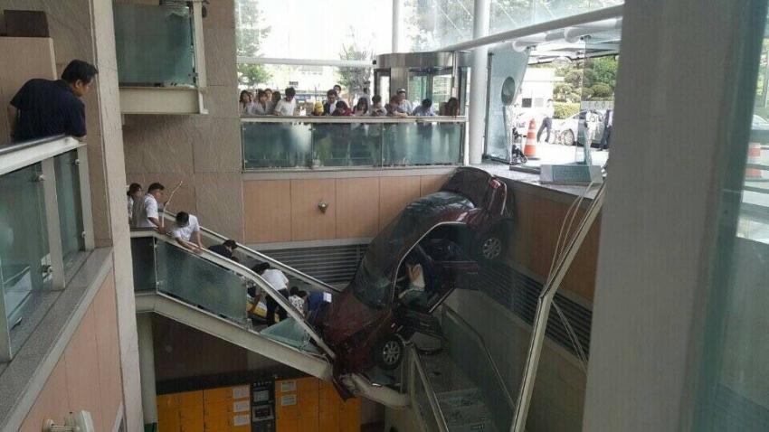 어렸을 적에 적토마라 불리던 유명한 축구선수가 포항스틸러스에 있을 때 차 몰고 마트 1층 유리창 깨고 지하로 떨어졌다는 기사를 본 적이 있는데 그 때 사진이랑 비슷하네요. |