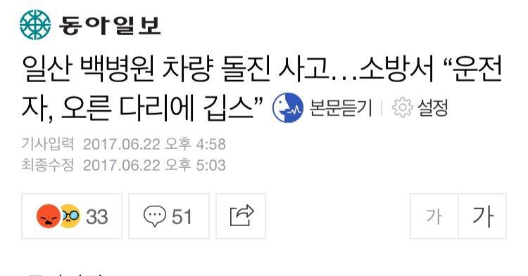 운전자가 깁스를 한 상태였다는 댓글도 있네요. 뭔지 정확하게 결정은 안났지만 본인 다리에 힘없다고 진료받고 깁스한 상태로 운전하다가 저런 사고 낸거면 정말 할말없네요. |