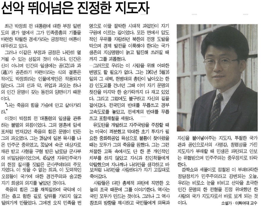 한걸레신문에 실린 박정희 찬양 기고