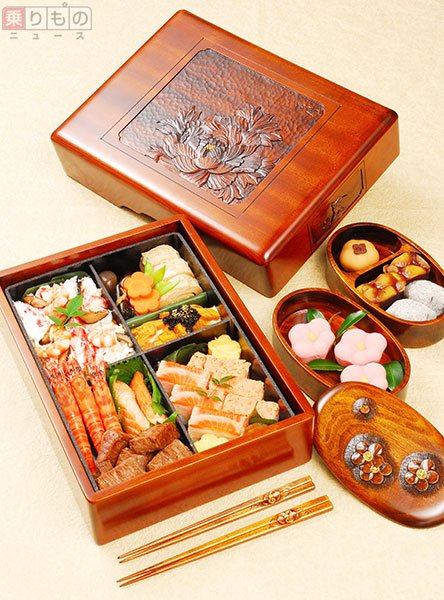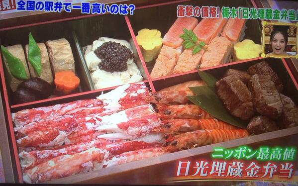 닛코시의 15만엔짜리 닛코매장금도시락. 송어, 홋카이도산 왕게, A5 와규 안심스테이크, 러시아산 벨루가 캐비아, 새우 소금구이 등 화려한 재료값만 약 5만엔에 장인이 2~3개월동안 만드는 닛코보리 공예 용기가 12만엔쯤 들어 사실 팔면 적자라고 하네요.