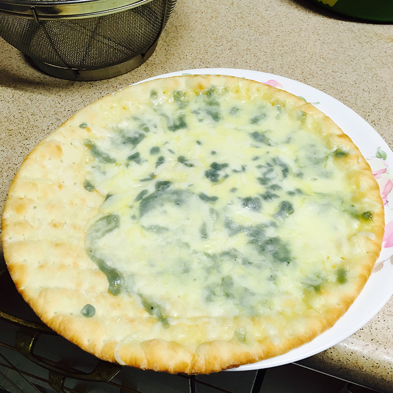 렌지에서 치즈 녹인 후 후라이팬으로 약불에 살짝 구우면 도우가 바삭하고 맛있어집니다.