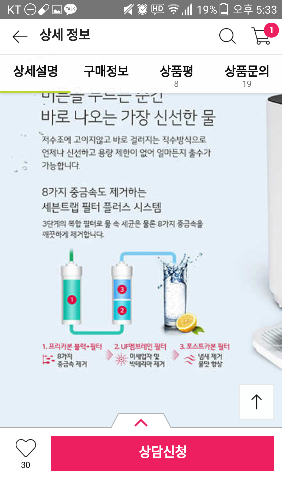 밑사진(lg정수기) 멤브레인 필터는 중공사막식이네요.