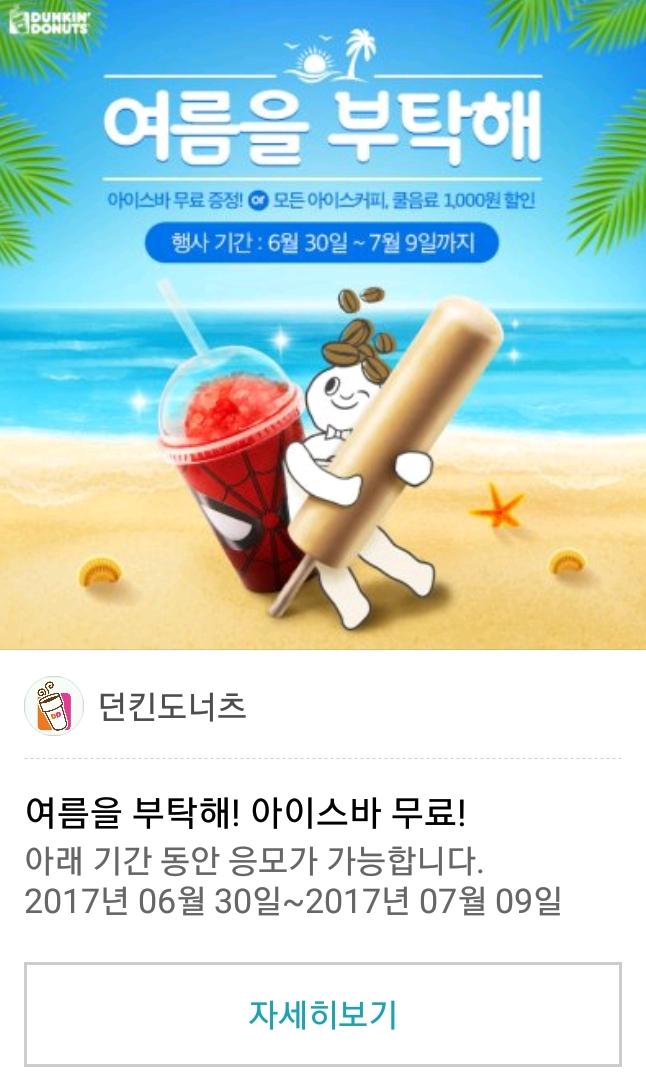 카톡 플러스친구 던킨도너츠 아이스바받으세요