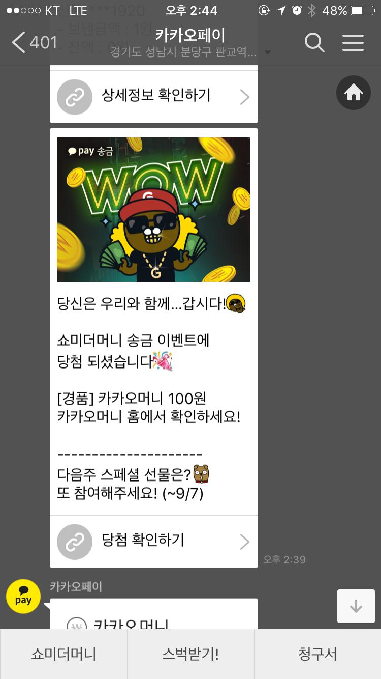 저도 5번 만에 100원 당첨됐어요 ㅋ |