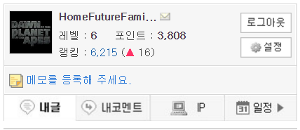 위 아이디는 혹성탈출2:반격의 서막인가를 보면 시저가 말하는 장면인데 제가 순서를 잘못 적어서 된 닉네임 입니다. 딜바다에서는 똑바로 수정하였습니다. ㅎㅎ
