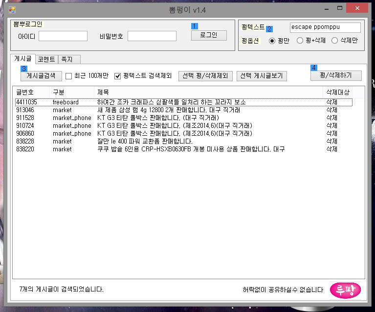 인기글을 보고 뽐펑이를 받습니다. 그리고 펑을 시킵니다.