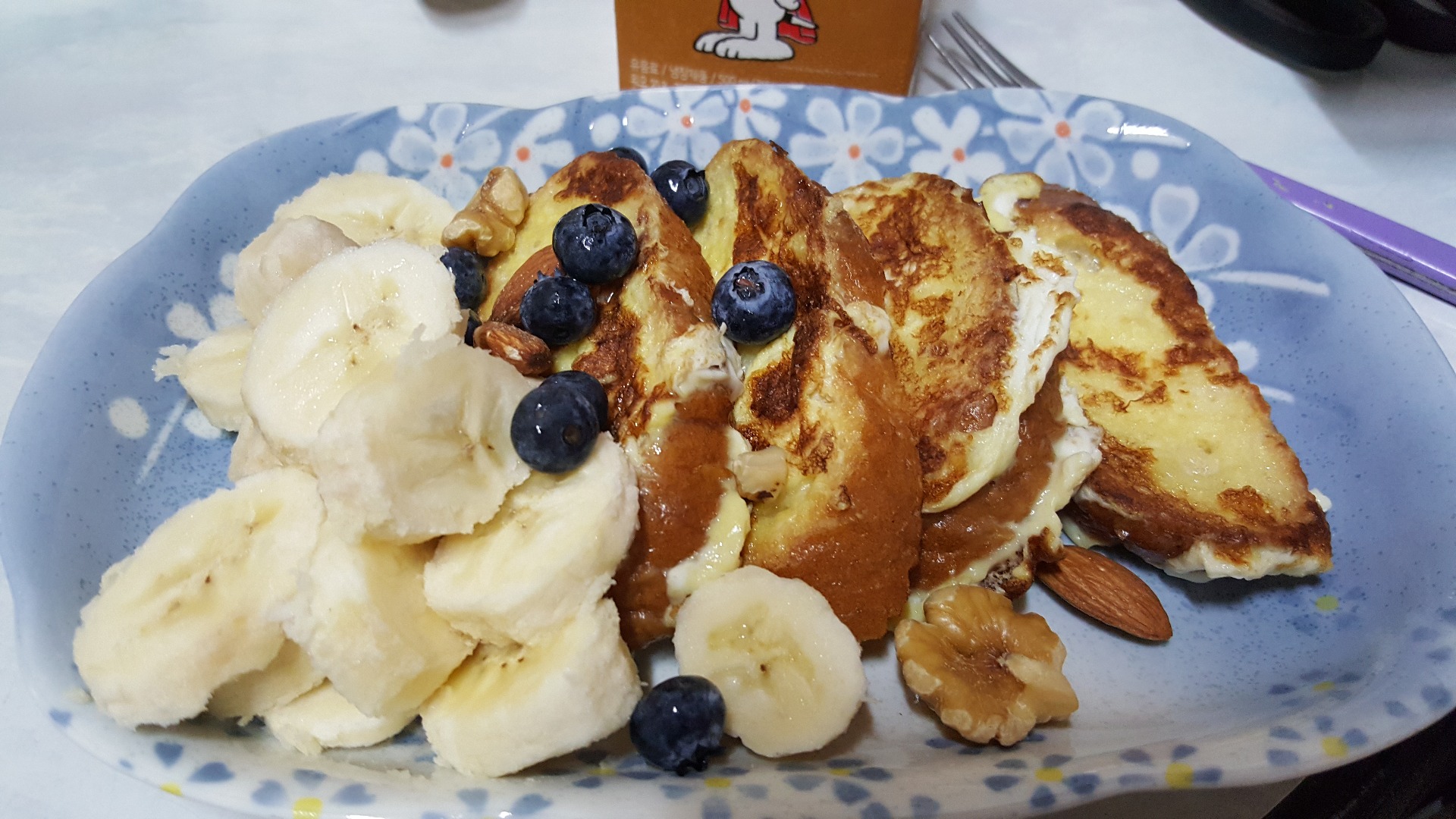 그 바게트는 결국 몇일 구워서 잼발라먹고 토마토 소스랑 치즈올려서 먹고 냉장고 에서 뒹굴다가 오늘 프렌치 토스트가 되었습니다. 촉촉 해요.