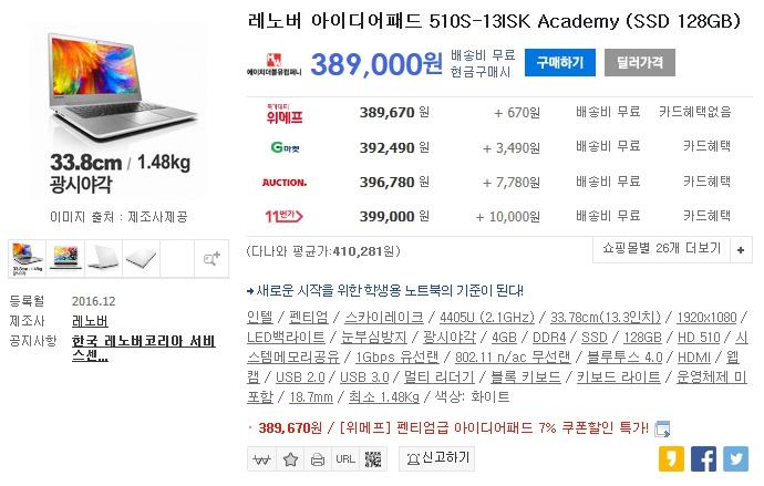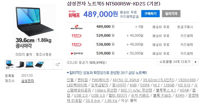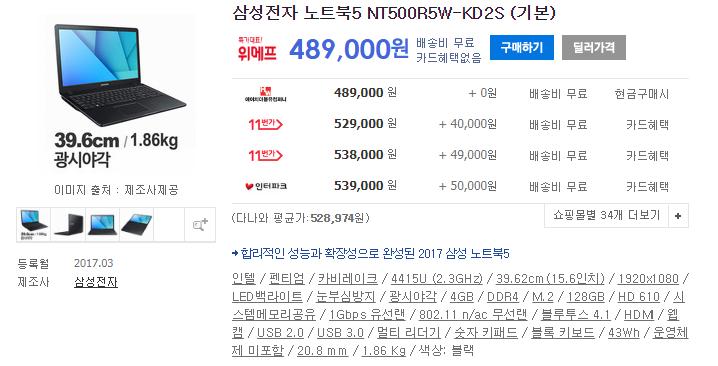 i5-7200u 탑재된 삼성꺼 보니 가격이 훌쩍 뛰어버리네요