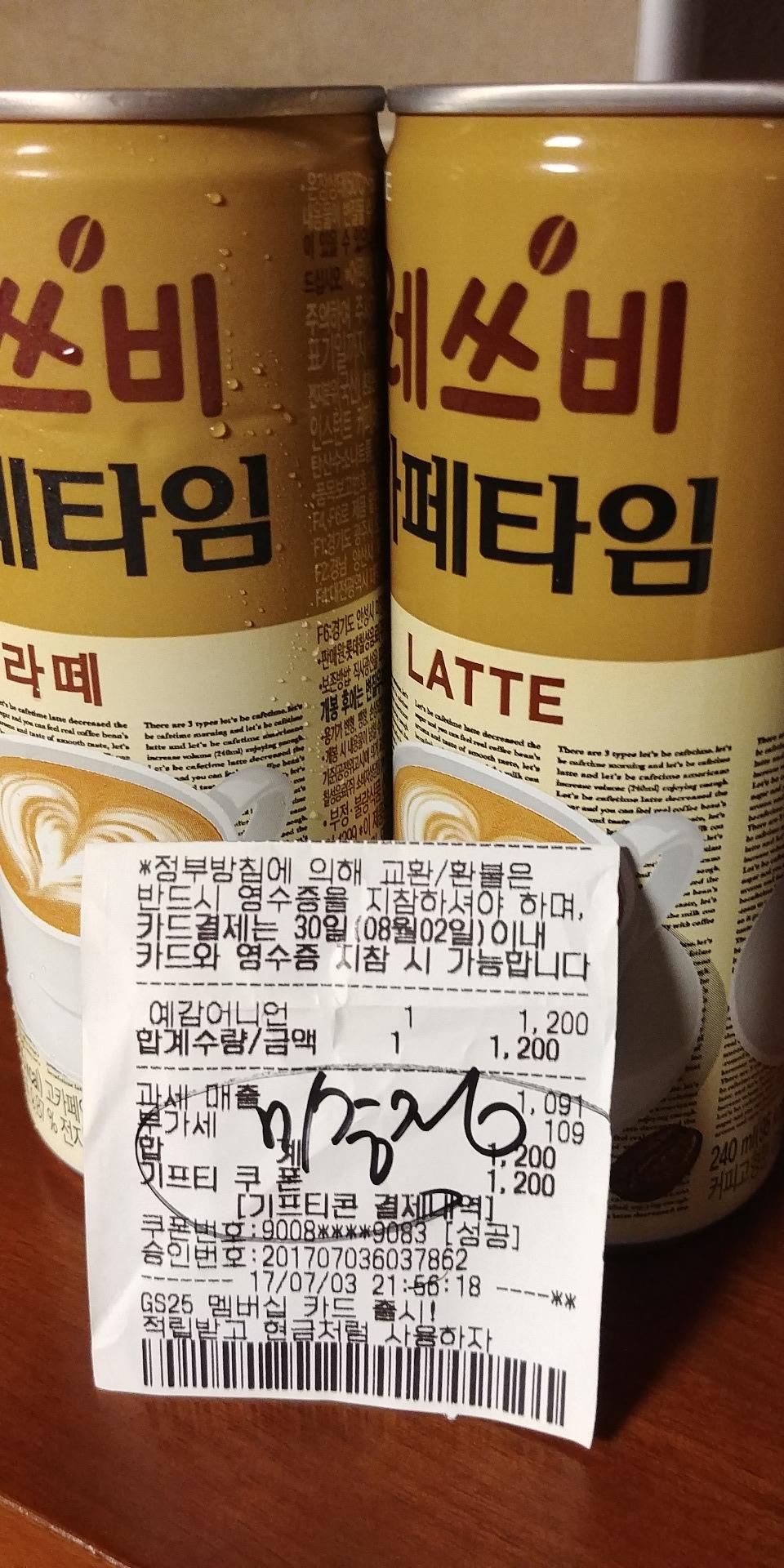 들어오는 길에 cu 들러서 페이코 첫 주차 사용하고 왔는데 버릇처럼 집어든 맥스봉이 이번 달은 행사가 아니래서 급하게 1+1인 레쓰비 카페타임을 샀는데 집에 와서 보니 롯데네요. 뭔가 씁쓸하네요...^^;