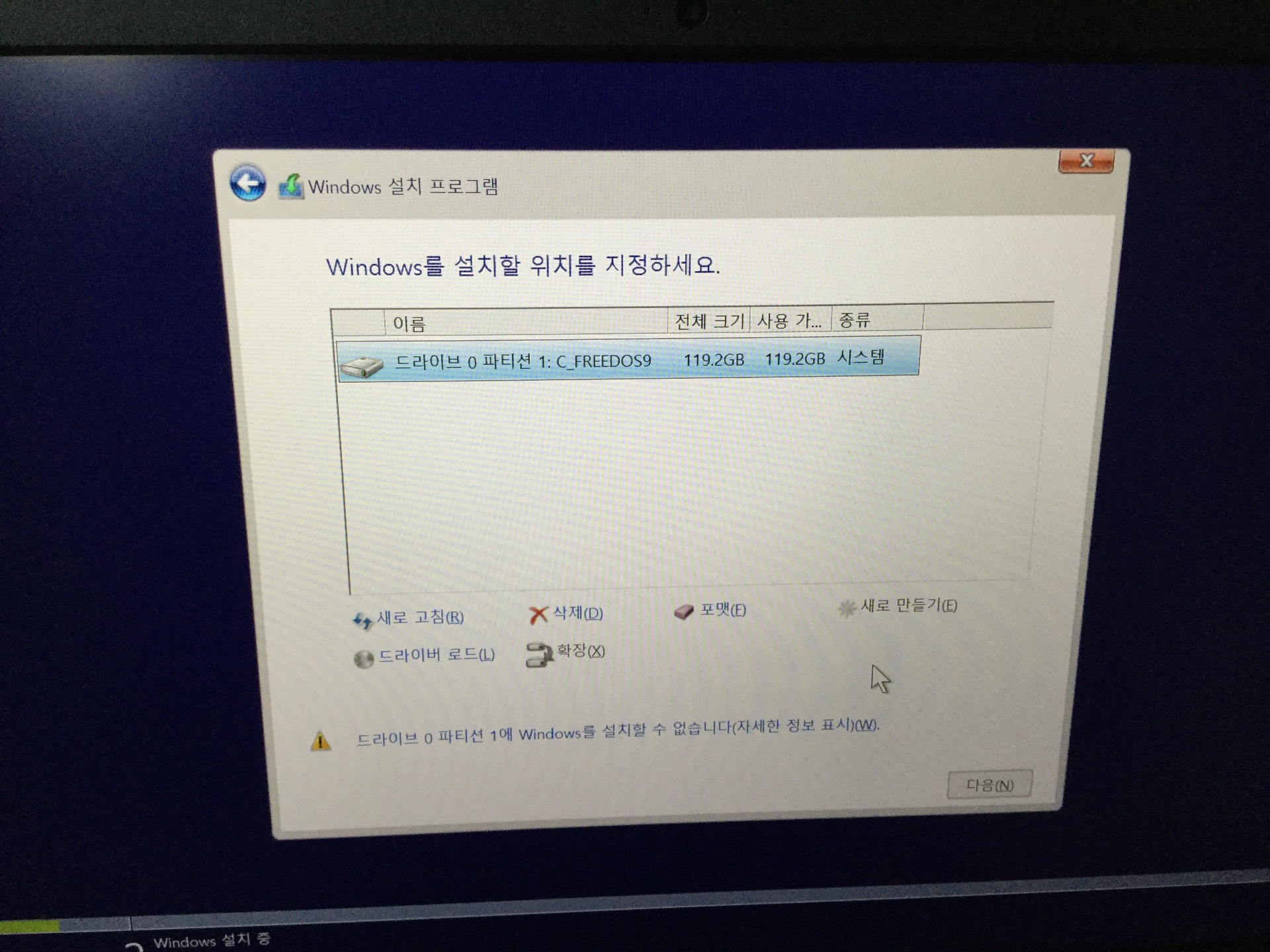 그냥 프리도스이니 삭제 로 날려버리세요 파티션