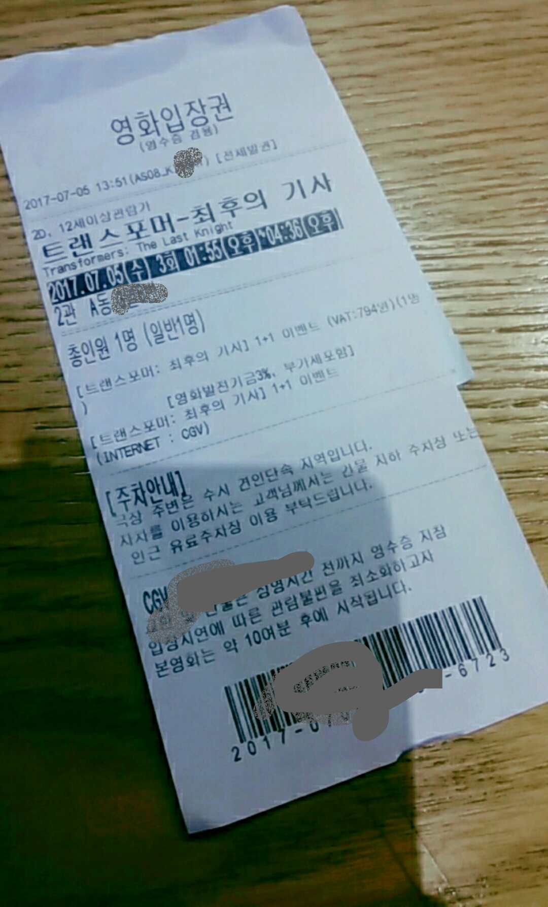 아침에고고고님의 트랜스포머 나눔에 당첨되서 보고왔어요ㅎㅎㅎ 관객도 별로없고 양옆에도 다 비어서 쾌적하게 봤네요ㅎ