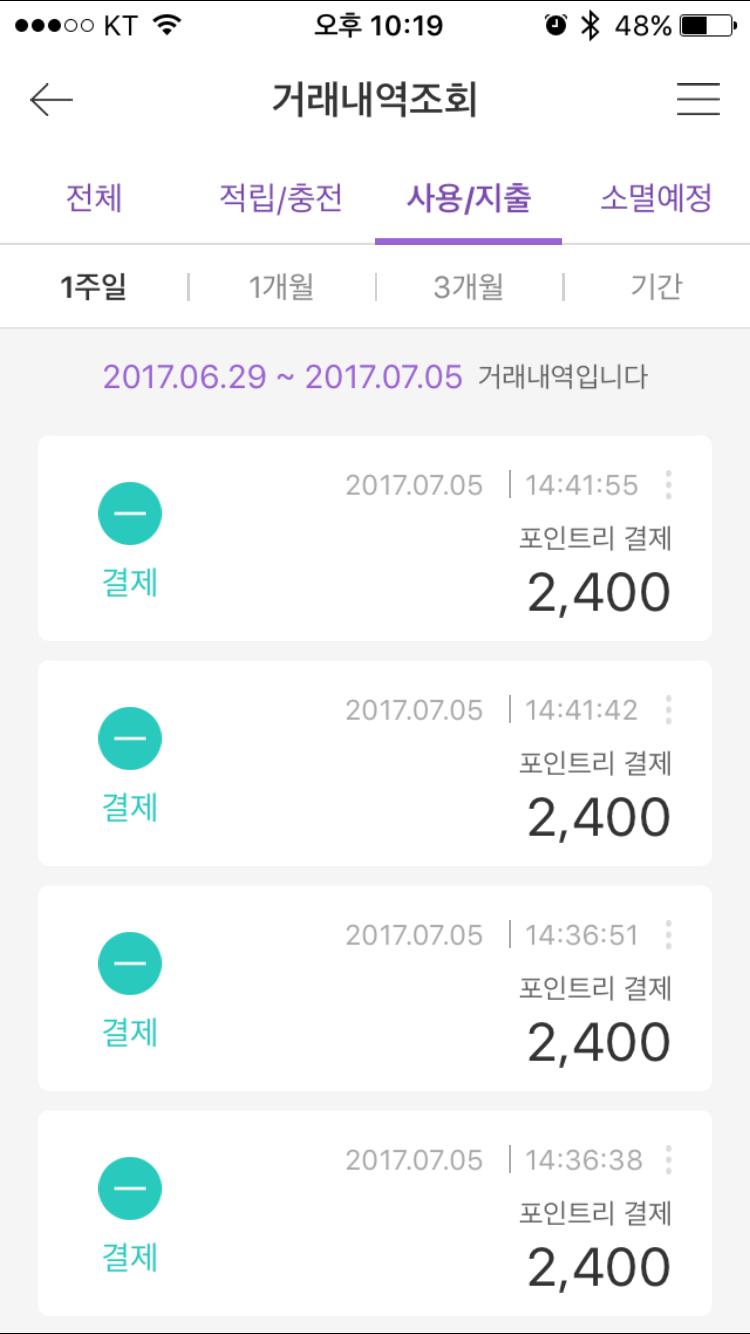 오늘 10000원 충전하고 투썸 하나 구매한것 밖에 없는데 포인트가 54밖에 없길래 확인해보니