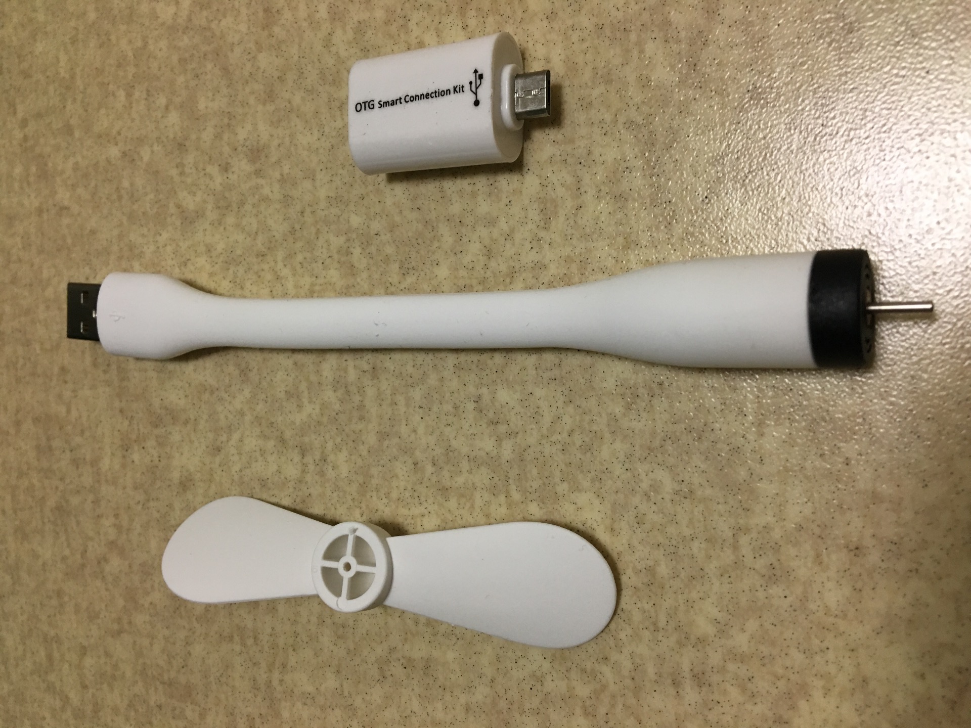 날개는 좀 부드러운 고무재질로 살짝 휠 수 있어요. 갖고다닐때 그냥 위로 날개만 뽑아서 빼면 될꺼같습니다. 모터달린 본체는 구부러지는데 구부러진대로 약간의 고정이 되고요. Otg 스마트 커넥션 킷은 어디에 쓰이는지 모르겠네요. 핸드폰에 연결하면 배터리로 쓰려나??