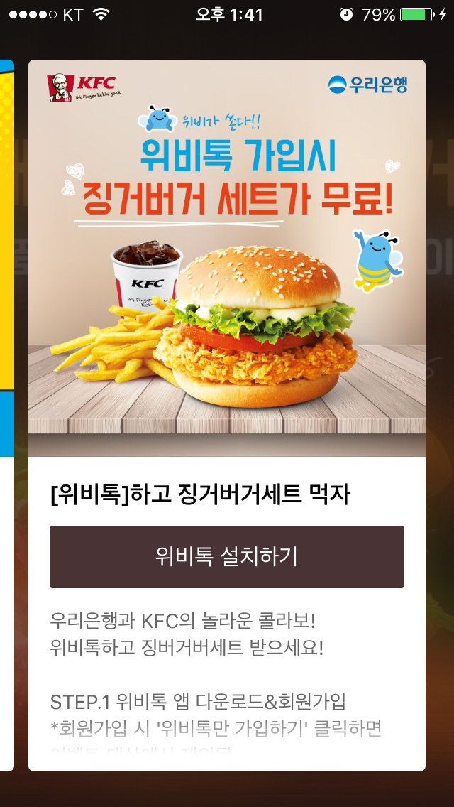 위비톡 가입하면 kfc쿠폰준다고 하는데 이거 가입할만한가요?