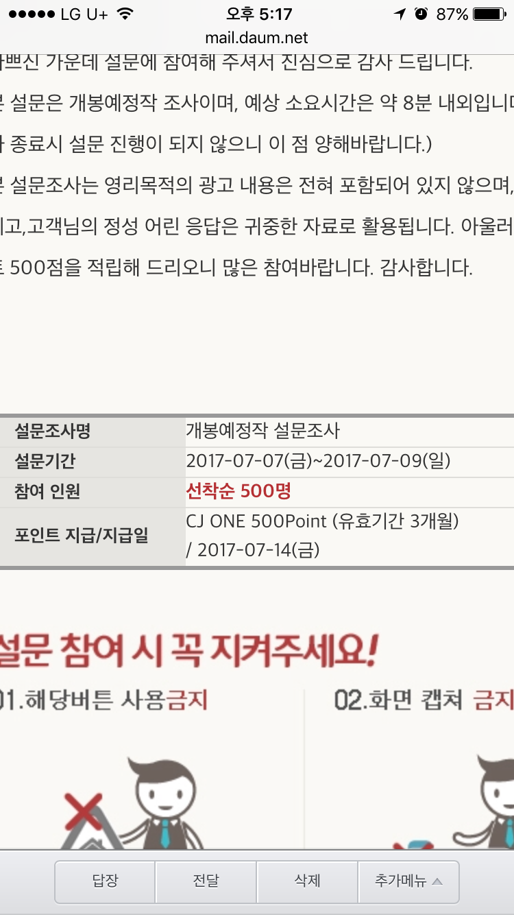 분기에 한번 꼴로 cgv 설문조사 메일 > 자유게시판