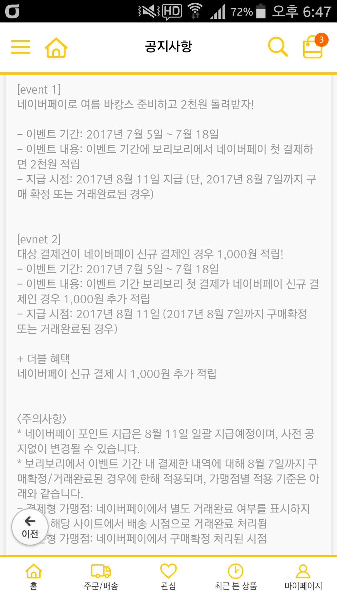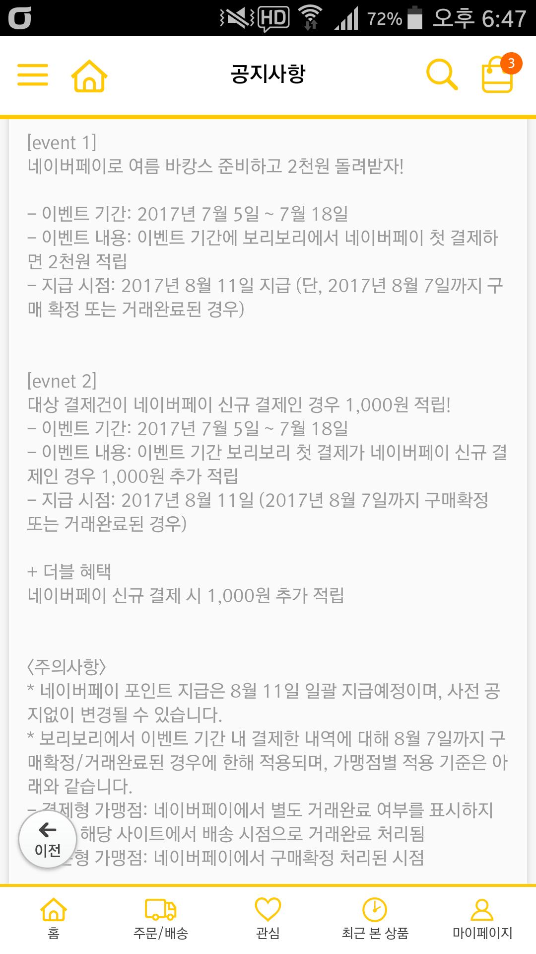 둘다 보리보리에서 네이버페이로 첫결제할때만 적용된다고 나와있어요! |