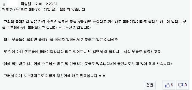 공격할 대상은 소비자인척 장난치는 업자지 우리 회원들이 아니라는 말에 너무나 공감이요....