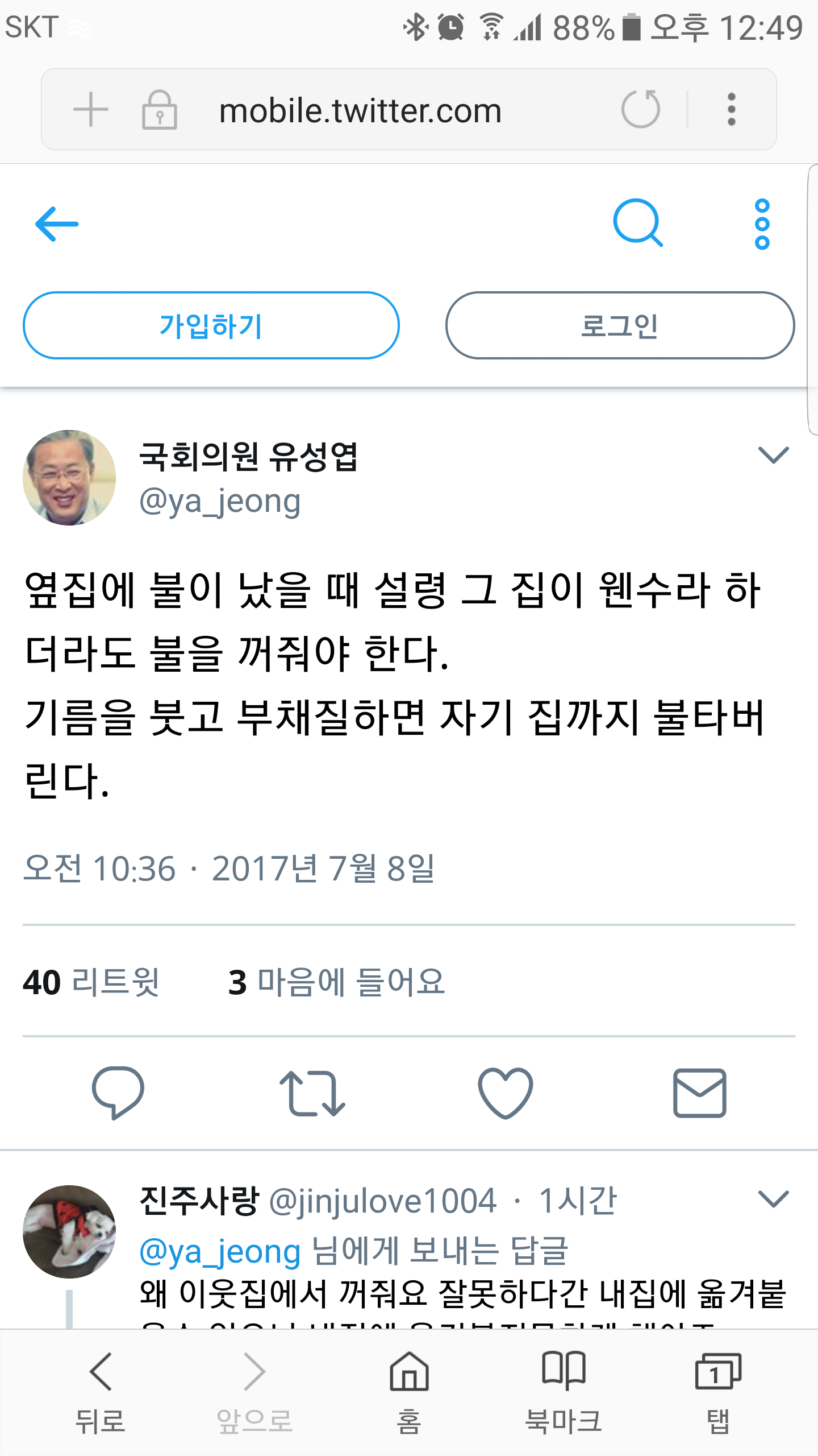 옆집에서 우리집 불내러 오다가 잘못해서 자기집에 불 붙었으면서 뭔소리야 |
