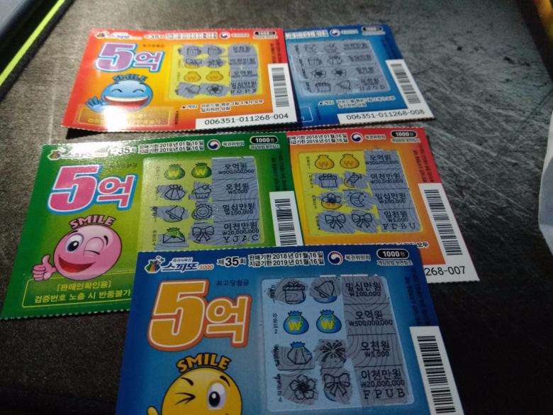 오랜만에 즉석복권을 사왔네요.