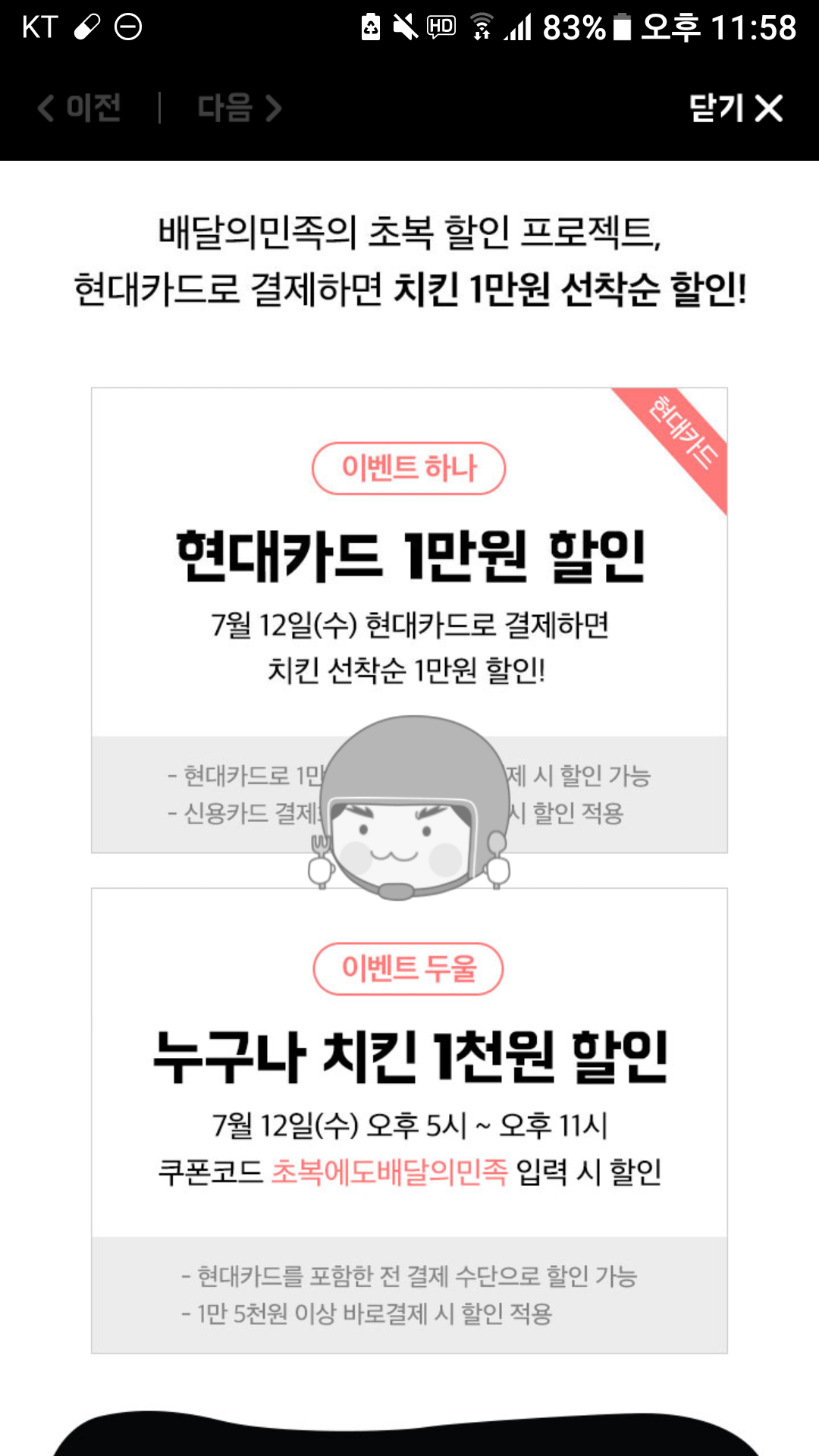 1만원 할인은 시간이 안 적혀있는데 0시부터일까요? 그렇다면 화요일 야식으로 시켜야 가능하겠네효 |