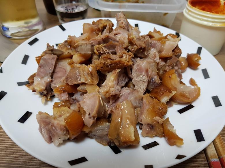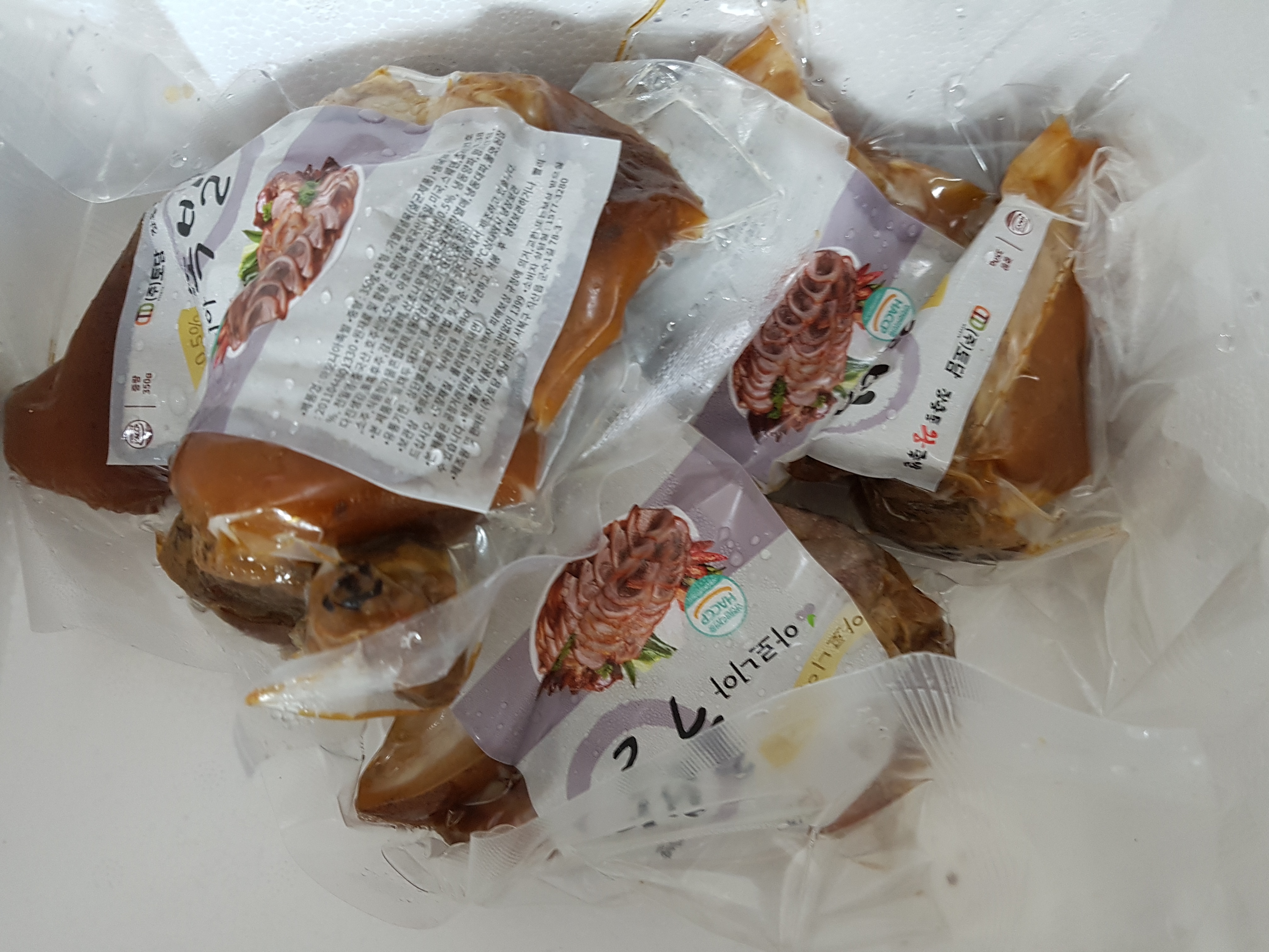 저는 5분간 끓는물에 끓이고 잘랐는데, 돼지냄새는 안났어요.