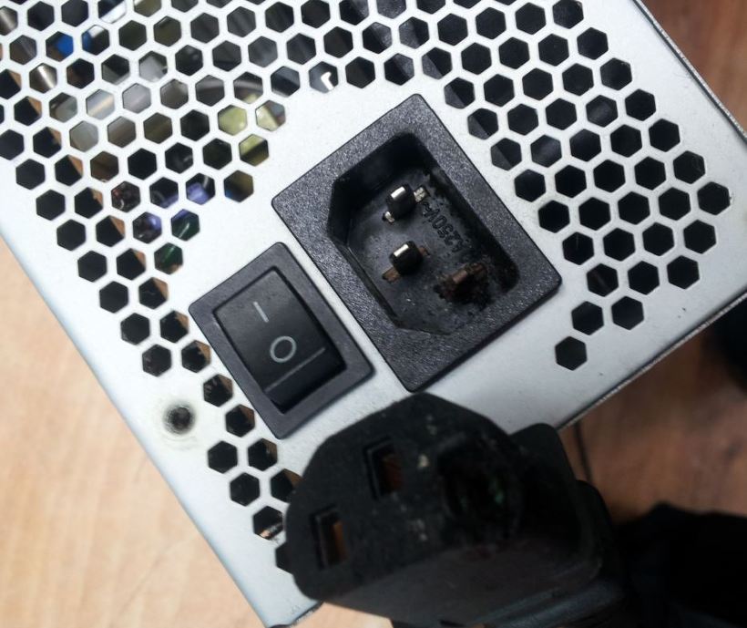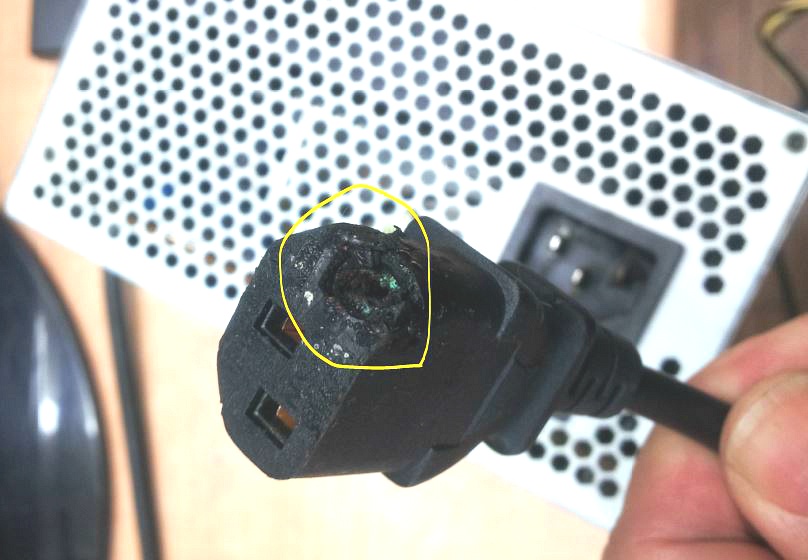 파워코드쪽에 과전압이걸려서 녹은걸로 보입니다. 파워자체 문제라고 보긴 어렵구요