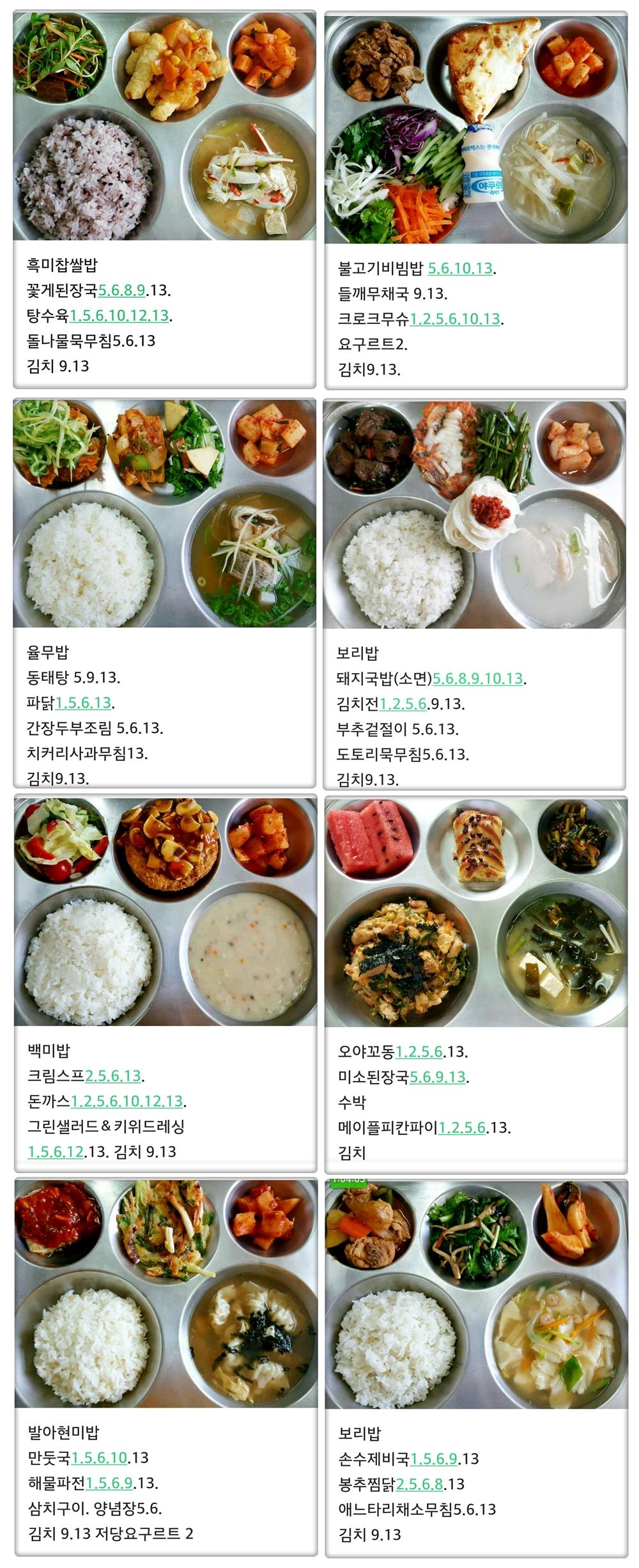 예정식단표는 1달치 프린트로 나오구요. 이건 실제 급식 사진을 매일 올려주시는거예요.