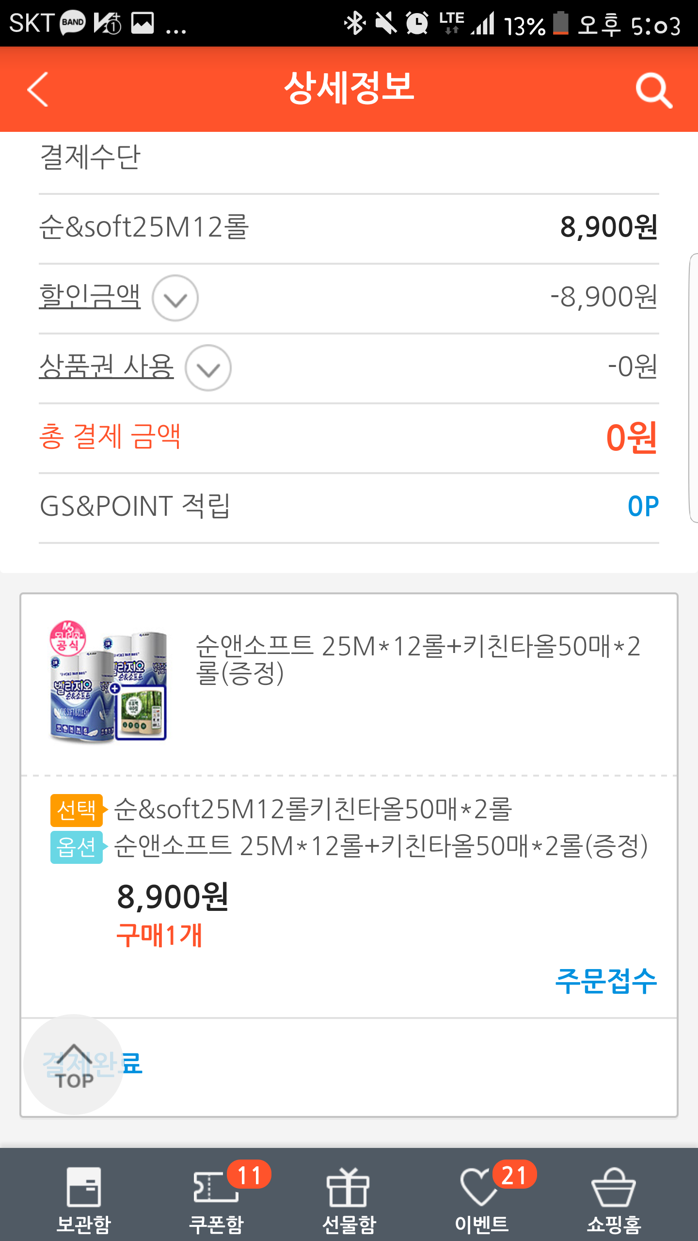 총결제금액이 어떻게 0원이나오는건가요 ㄷㄷ |