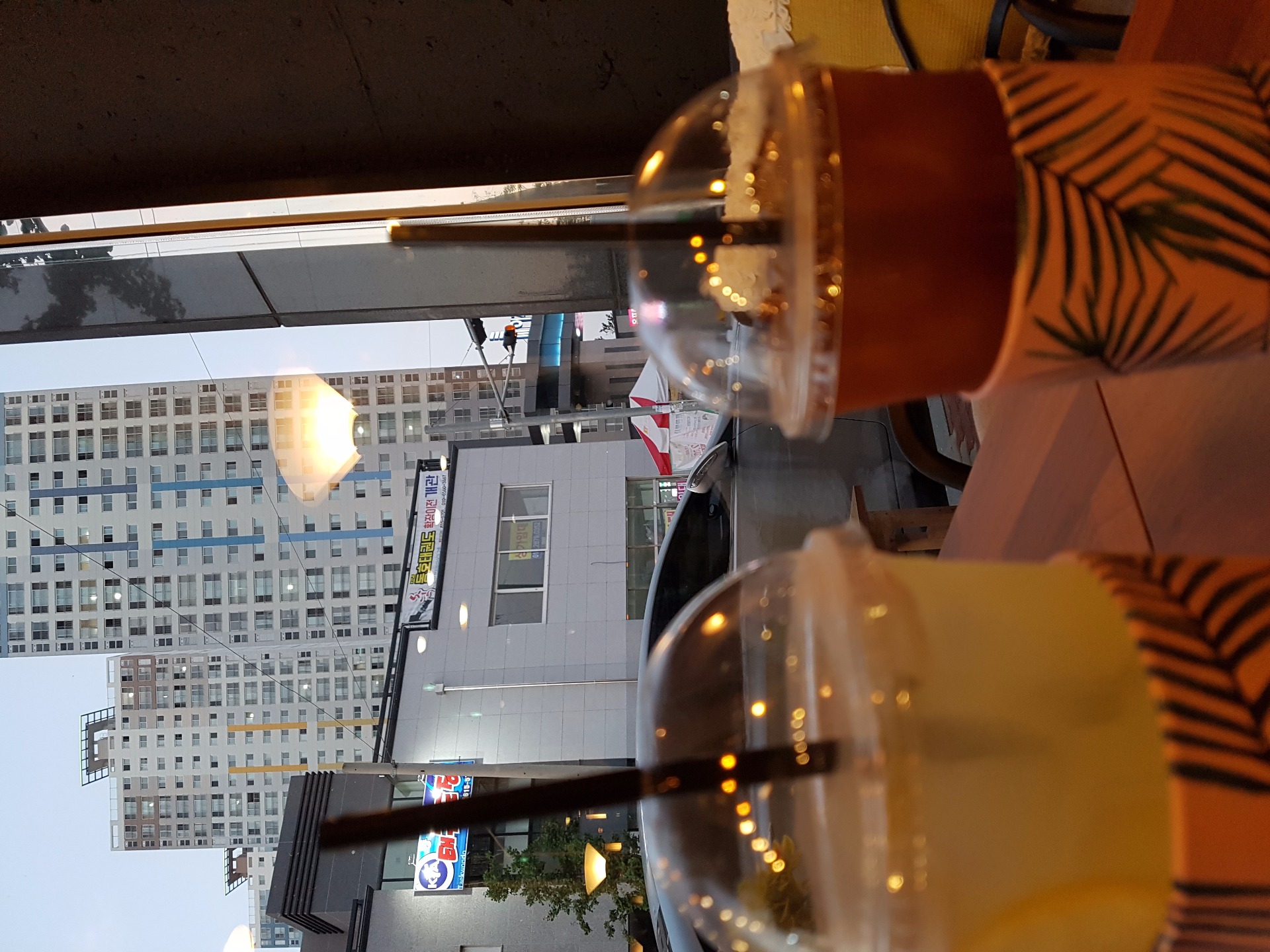 집앞에 와서 간단히 후식으로 아메와 레몬에이드 한잔 하면서 각자 폰질 중입니다.ㅎㅎ