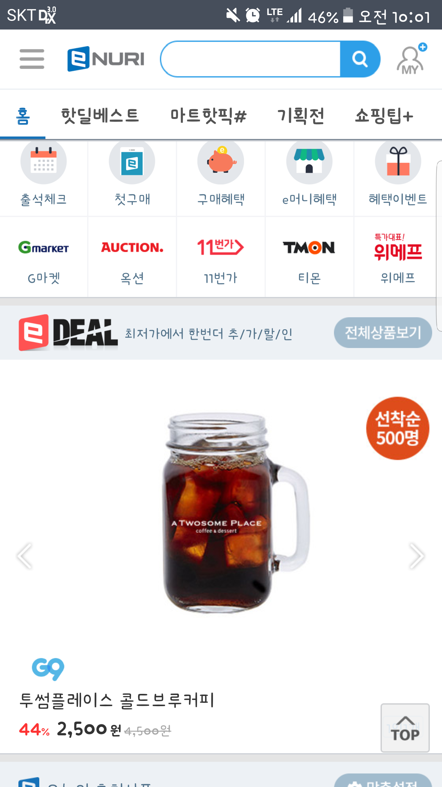 에누리 10시 투썸 콜드브루 2,500원 / 500명 > 자유게시판