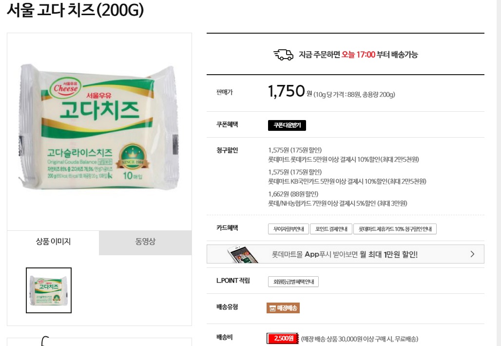 10장들이 200g짜리가 1750이면 가격 괜찮죠. 물론 온라인뒤저보면 이것보다 더 저렴한 슬라이스 치즈도 있긴한데