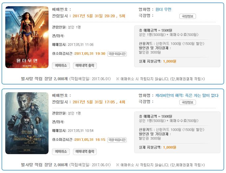 그럼 cj카드로 결제하면 2천원에 볼수있나요? |