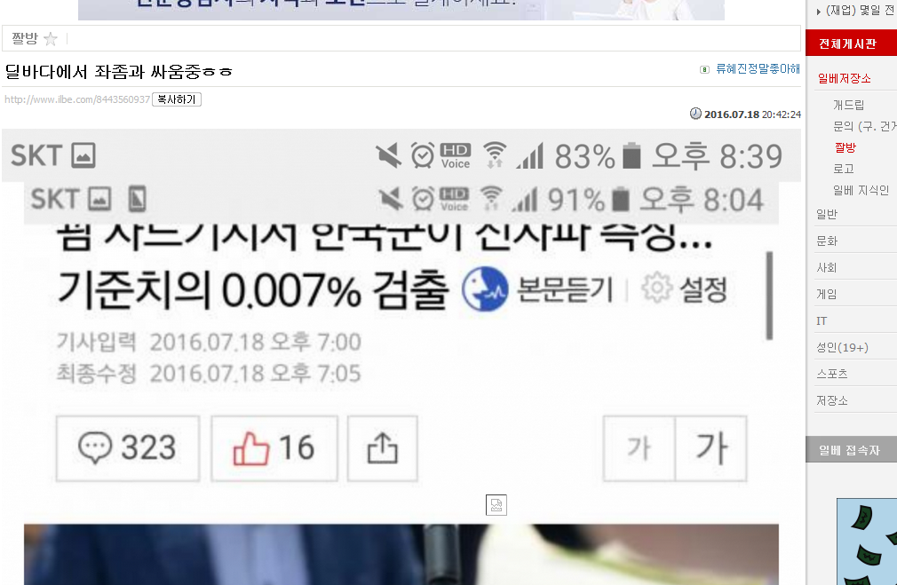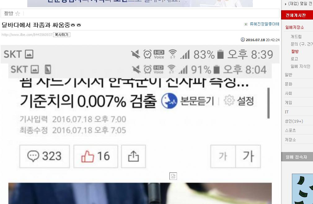 자세히는 파고들지 않았지만... 아마 했을겁니다... 일베 애들이 분탕치고 튀는게 하루이틀이 아니니까요 ㅎ |