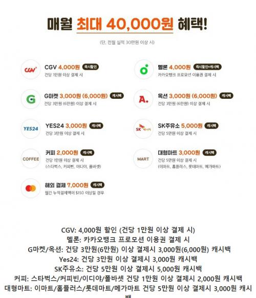 가맹점 혜택을 받기위한 기준 금액대가 다소 높다는 생각이 드네요.