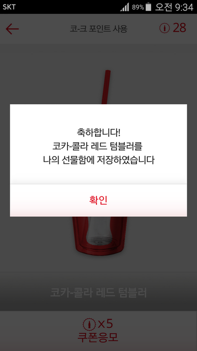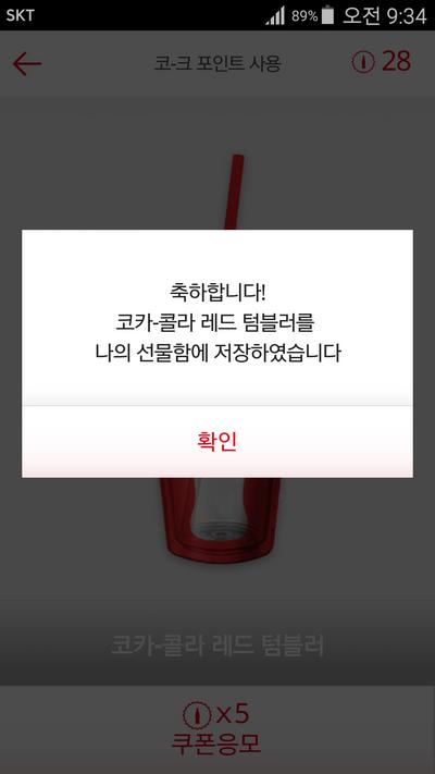 콜라병 뒤집힌거 된후로 매일 응모해도 레드텀블러는 안되네요 |