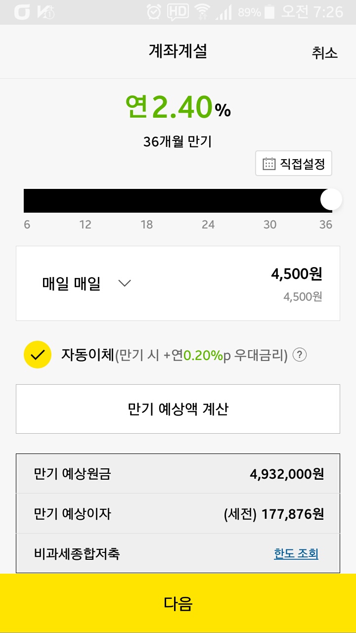카카오뱅크 설치하고 적금 셀프설계를 해보니 매일매일 저축(자동이체)도 되더라구요.