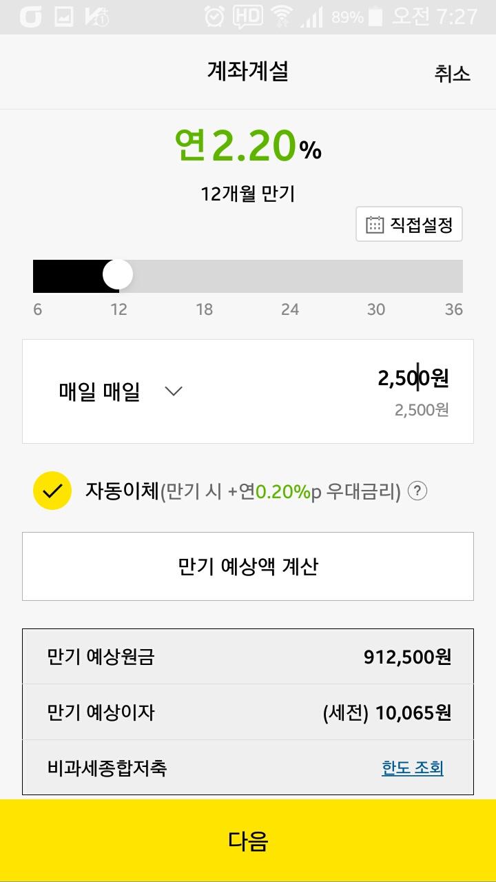 매일매일 2500원씩 '수동이체'를 하였습니다.