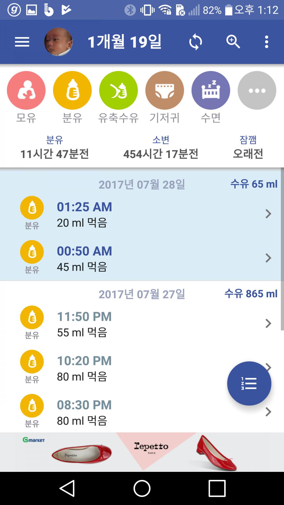 아기 먹는 양 관리 는앱