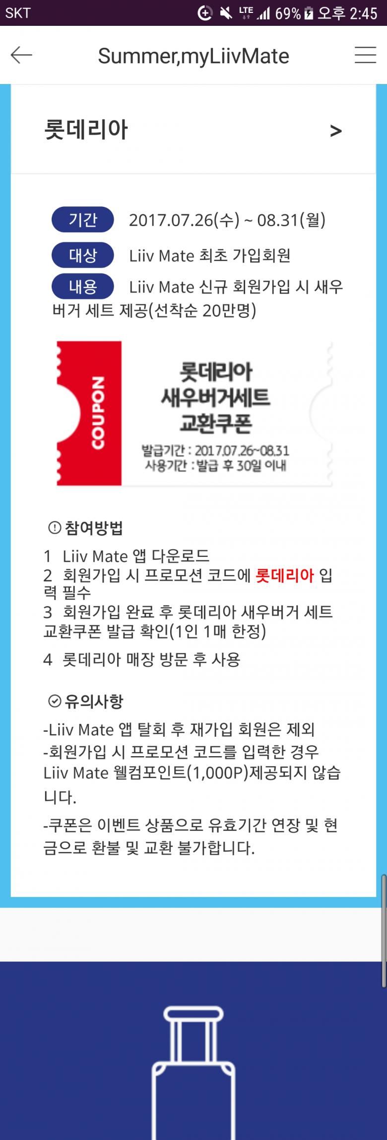 프로모션코드에 롯데리아 입력하셔야해요