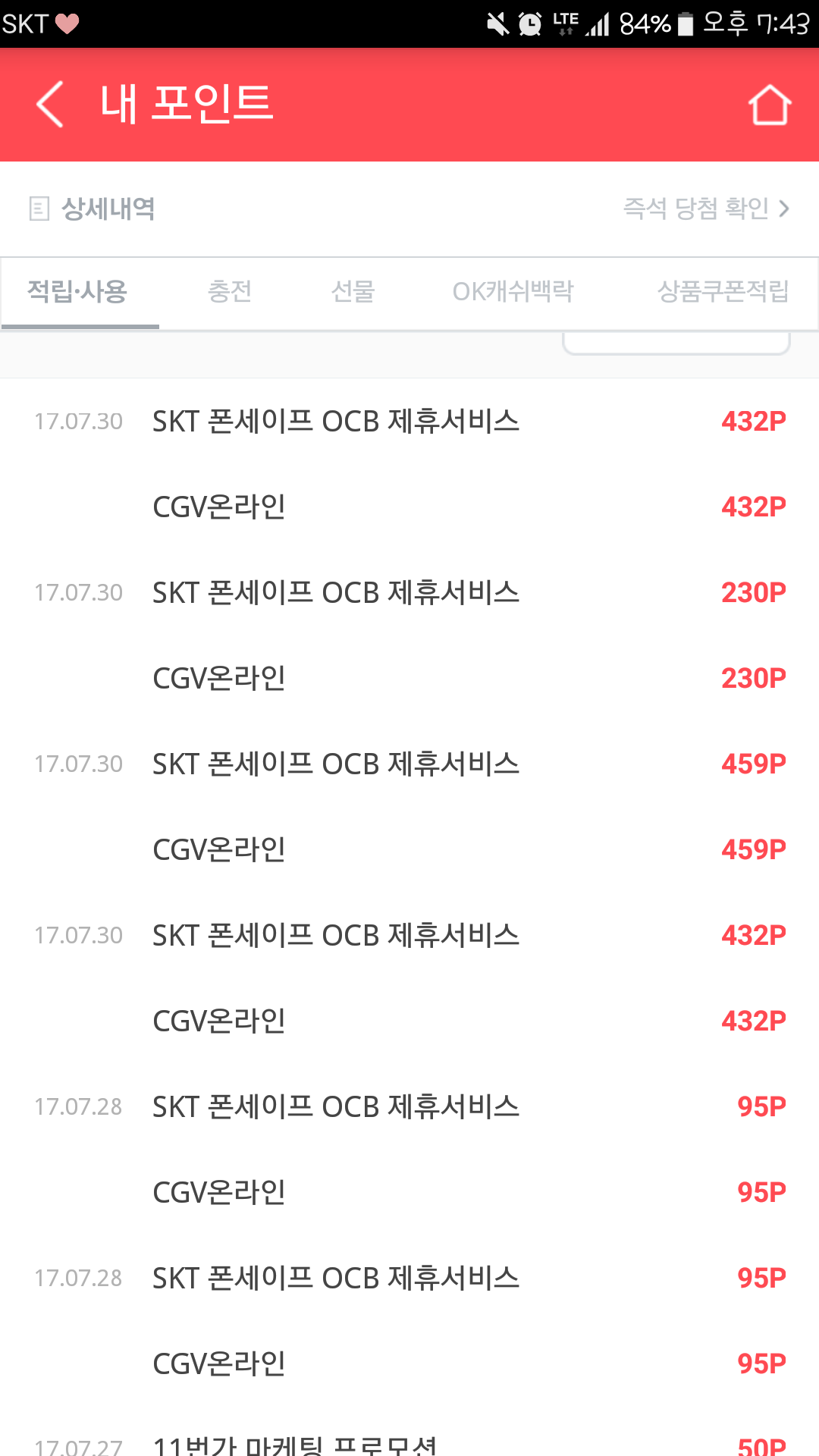 cgv에서 영화본게 몇편인데 지금까지 캐시백 적립되는 줄 모르고 살았네요.. 올해만 20만원 넘게 썼는데 ㅜㅜ