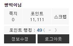 포인트랭킹이 11이 아니라 아쉽군요 ㅋㅋㅋㅋ | ||