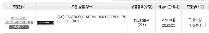 2016-07-01일에 DDR4 8GB 램을 개당 35,900원에 샀는데,