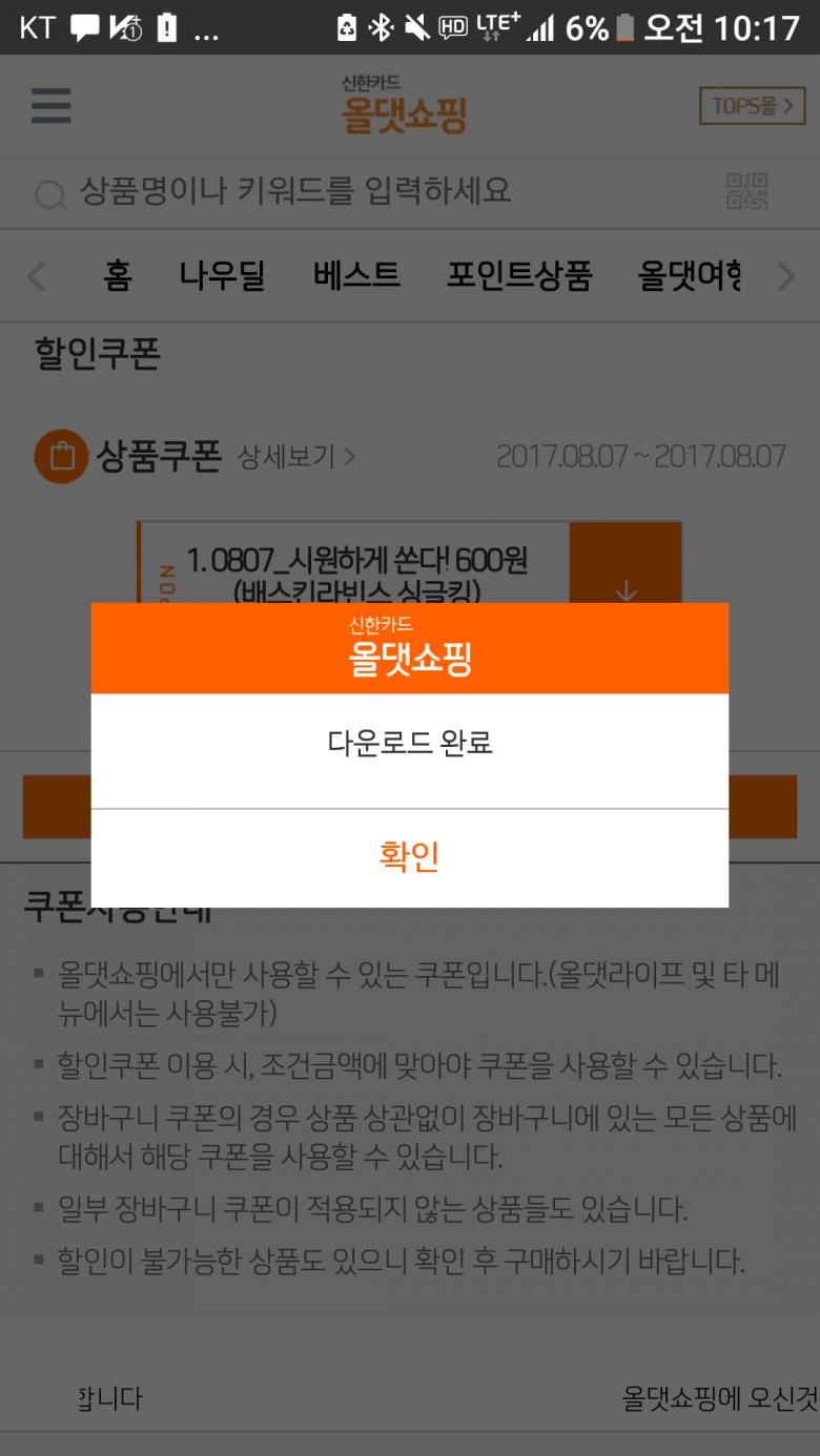 그리고 주문도 모바일앱에서는 안되고 올댓쇼핑 앱으로 하니 잘됩니다.