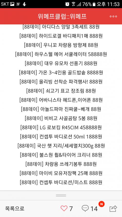 이거 목록은 위메프 모바일웹에서 보는 건가요? 앱에서는 안보여서 ^^; | ||